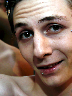 Horny twinks taking a shower together direct streams of smelly yellow piss at each other.