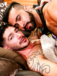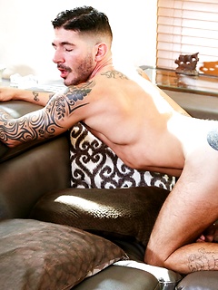 Tattooed man Rikk York fucks boyfriend with glasses Jay Austin in the butthole