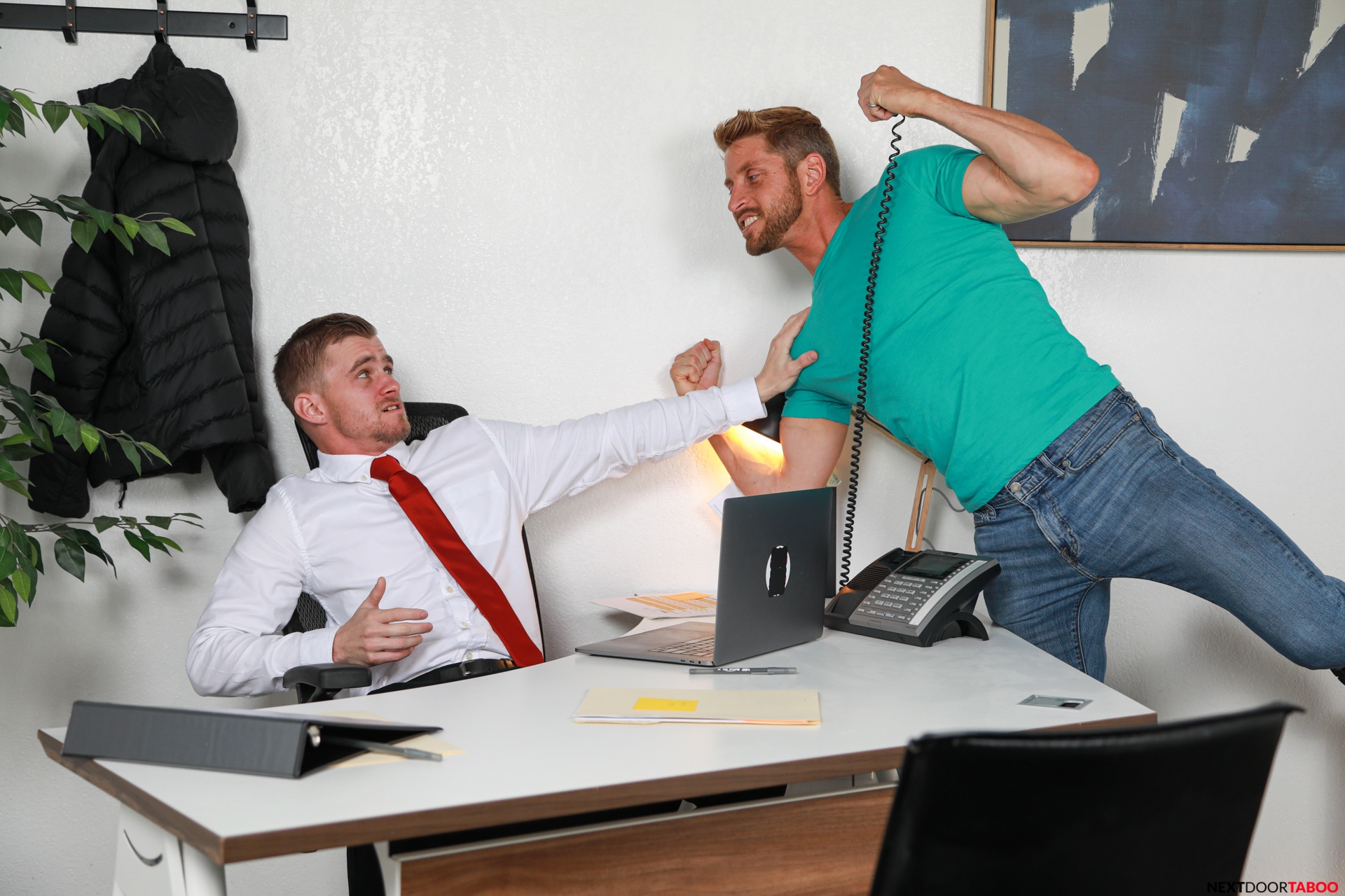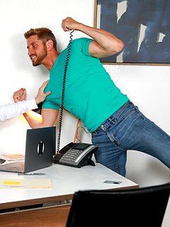 Gay boyfriends Tony and Brad enjoy a hardcore fuck on a wooden table