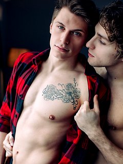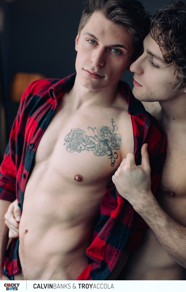 Sexy young boyfriends Troy Accola and Billie Ramos slip away from the party downstairs to sexually pleasure each other from head to toe.