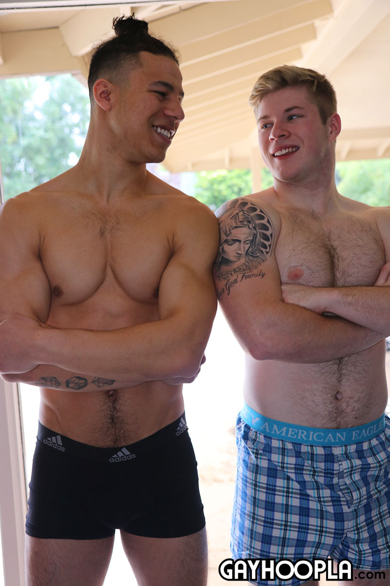 Sexy young boyfriends Troy Accola and Billie Ramos slip away from the party downstairs to sexually pleasure each other from head to toe.